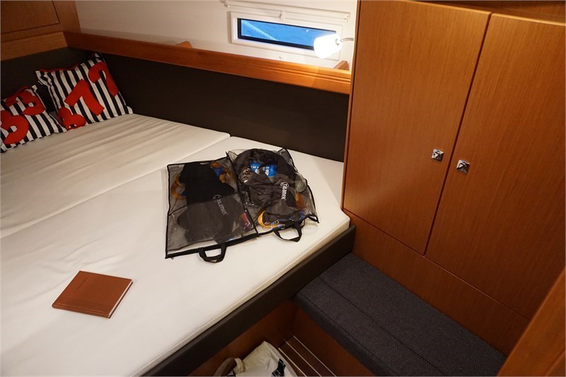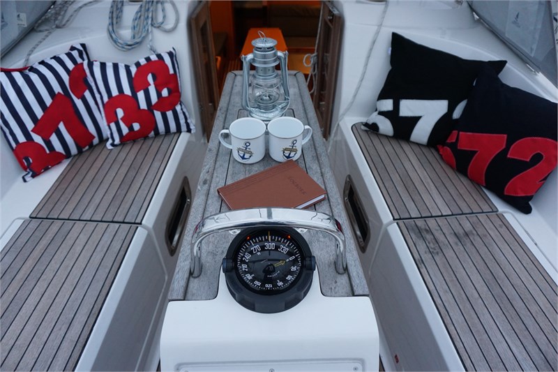 | SicherheitsausrüstungUKW-Funk, Automatikwesten, GMDSS-Funk, Ankerball, Bootsmannstuhl, Satz mit Notsignalen, Notpinne, Verbandskasten, Rettungsring, Schwimmwesten, MCA coded, Navigationslichter, Lifebelts, Taschenlampe NavigationAIS, Fernglas, Binnenrevierkarten, Uhr, Barometer, Instrumente im Cockpit, Echolot, Hafenpläne auf CD, GPS, Handpeil-Kompass, Logge, Kompass, Hafenhandbuch, Kartenplotter, Seekarten, Windmessanlage, Windex, Kurzwellenradio Sonstige AusstattungBugstrahlruder, Außenlautsprecher, Heizung, Warmwasser, MP3, Radio-MP3 Player, Dusche, Sprayhood, Herd, Steckdose 12 Volt, Steckdose 220 Volt, zusätzliche Luken, Batterieladegerät + Landkabel, Kaffeemaschine, Cockpittisch, Kompressorkühlschrank, Heckdusche, Elektrische Bilgenpumpe, Elektr. Kühlschrank, Elektrische Ankerwinde, Pantry komplett, Gasflasche, Fäkalientank, Manuelle Ankerwinde, Backofen, Parkplatz inclusive, Radio-CD-Spieler, Landkabel, Badeleiter, Bordwerkzeug, Wasserkocher |