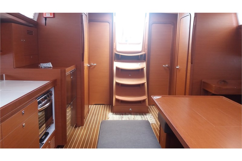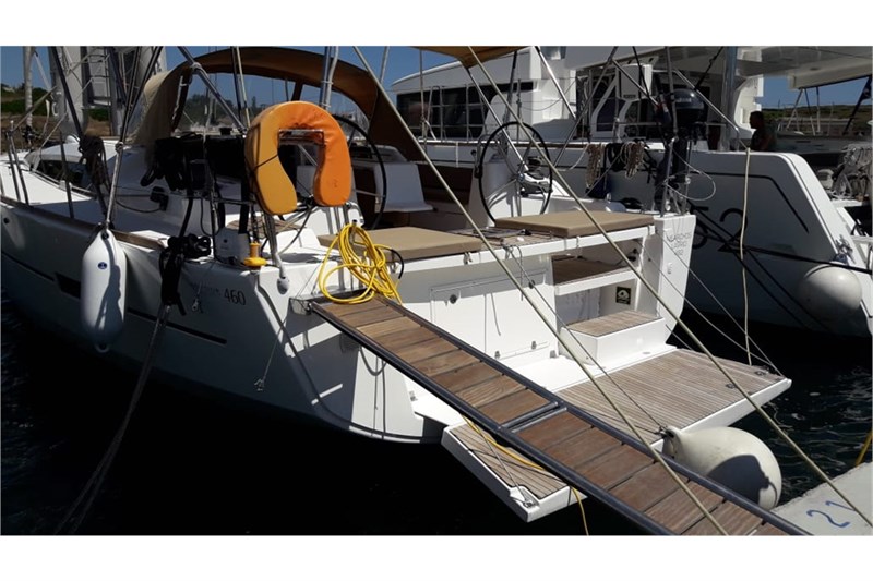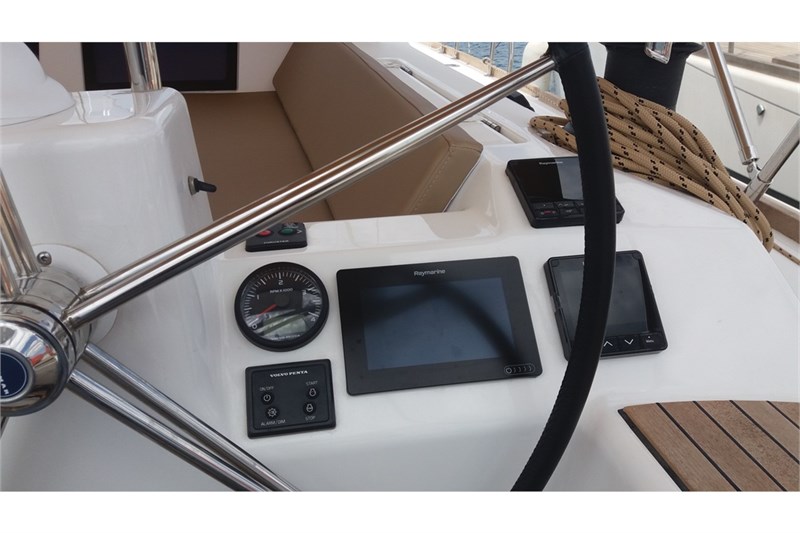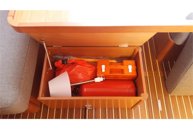| SicherheitsausrüstungUKW-Funk, Automatikwesten, EPIRB, GMDSS-Funk, Rettungsinsel, Ankerball, Bootsmannstuhl, Satz mit Notsignalen, Notpinne, Verbandskasten, Blitzboje, Rettungsring, Schwimmwesten, Lifebelts, Taschenlampe NavigationAutopilot, Farbplotter, Fernglas, Echolot, Hafenpläne auf CD, Seekarten auf CD, Flaggen QNC, Handpeil-Kompass, Kompass, Hafenhandbuch, Windmessanlage Sonstige AusstattungBimini-Top, Bugstrahlruder, Außenlautsprecher, Beiboot, Elektrische Toilette, Warmwasser, Inverter (Umwandler), Lazy-Jacks, Radio-MP3 Player, überwachter Parkplatz, Dusche, Sprayhood, Wasserentsalzer, Steckdose 12 Volt, Steckdose 220 Volt, Batterieladegerät + Landkabel, Kaffeemaschine, Cockpittisch, Kompressorkühlschrank, Heckdusche, Elektrische Bilgenpumpe, Elektr. Kühlschrank, Elektrische Ankerwinde, Pantry komplett, Gangway, Gasflasche, Fäkalientank, Backofen, Segel Reparatursatz, Landkabel, Badeleiter, Bordwerkzeug |