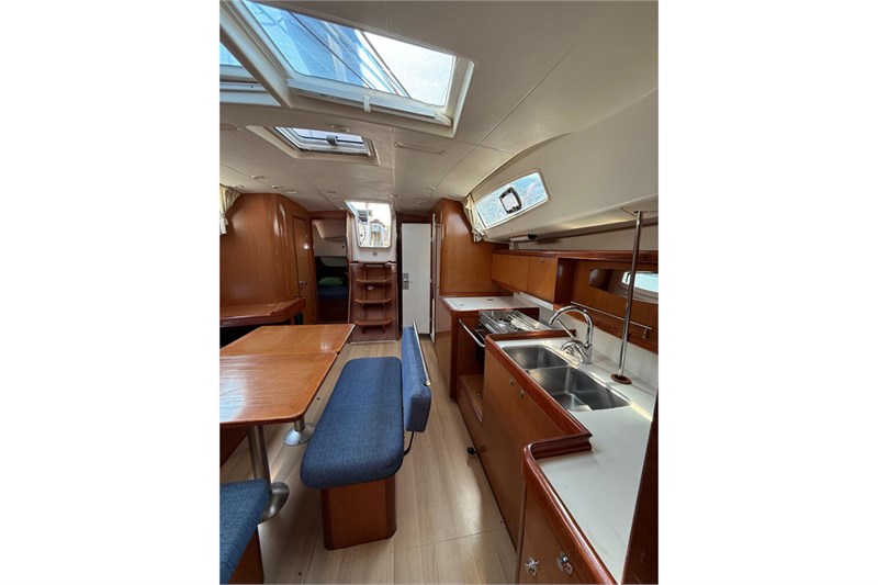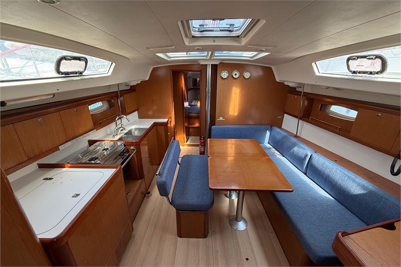 | SicherheitsausrüstungUKW-Funk, Automatikwesten, EPIRB, Rettungsinsel, Bootsmannstuhl, Satz mit Notsignalen, Notpinne, Verbandskasten, Blitzboje, Rettungsring, Schwimmwesten, Navigationslichter, Lifebelts, Taschenlampe NavigationAutopilot, Farbplotter, Fernglas, Uhr, Barometer, Instrumente im Cockpit, Echolot, Hafenpläne auf CD, Seekarten auf CD, Flaggen QNC, GPS, Handpeil-Kompass, Leuchtfeuerverzeichnis, Logge, Kompass, Hafenhandbuch, Seekarten, Windmessanlage Sonstige AusstattungBimini-Top, Außenlautsprecher, Beiboot, Warmwasser, Herd, Steckdose 12 Volt, Steckdose 220 Volt, Batterieladegerät + Landkabel, Cockpittisch, Heckdusche, Taucherbrille, Elektrische Bilgenpumpe, Elektr. Kühlschrank, Elektrische Ankerwinde, Taucherflossen, Pantry komplett, Gangway, Fäkalientank, Radio-CD-Spieler, Segel Reparatursatz, Amtliches Bootszeugnis, Badeleiter, Bordwerkzeug |
